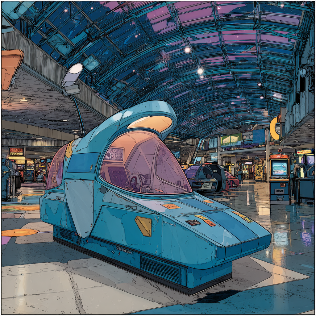 As the mother was finishing up work with the receptionist, she could not shake the feeling that something was wrong. She kept glancing at the pod, but this time the glass was no longer transparent and could not see her child. She didn't see him exit, but still felt uneasy that he was no longer in her view. She quickly scanned the pod and nearby looking for anything that should require her attention, and that's when the two words "final destination" jumped out at her. She knew what kind of pod this was, but what was it doing right inside of an arcade?! Now fully aware of everything that was happening, she dropped her interaction with the receptionist, and ran as fast as she could to the pod.