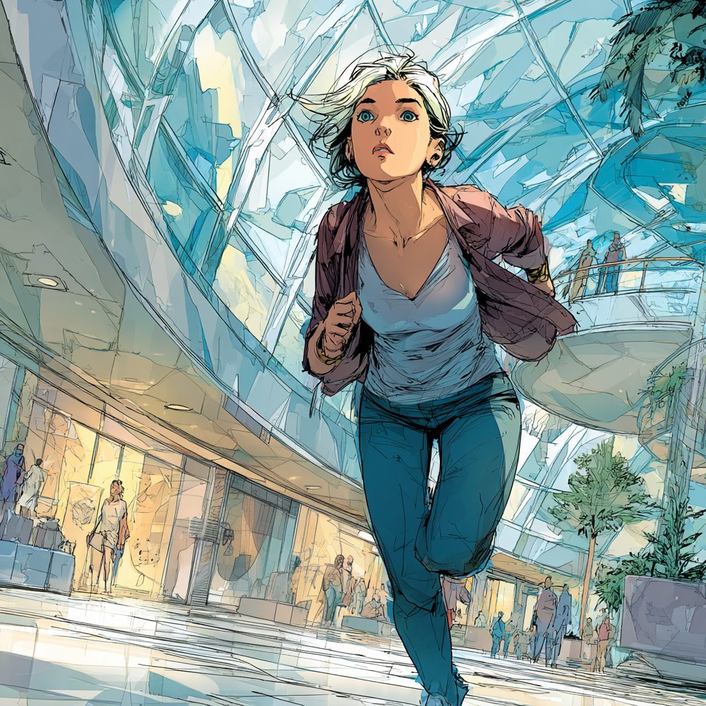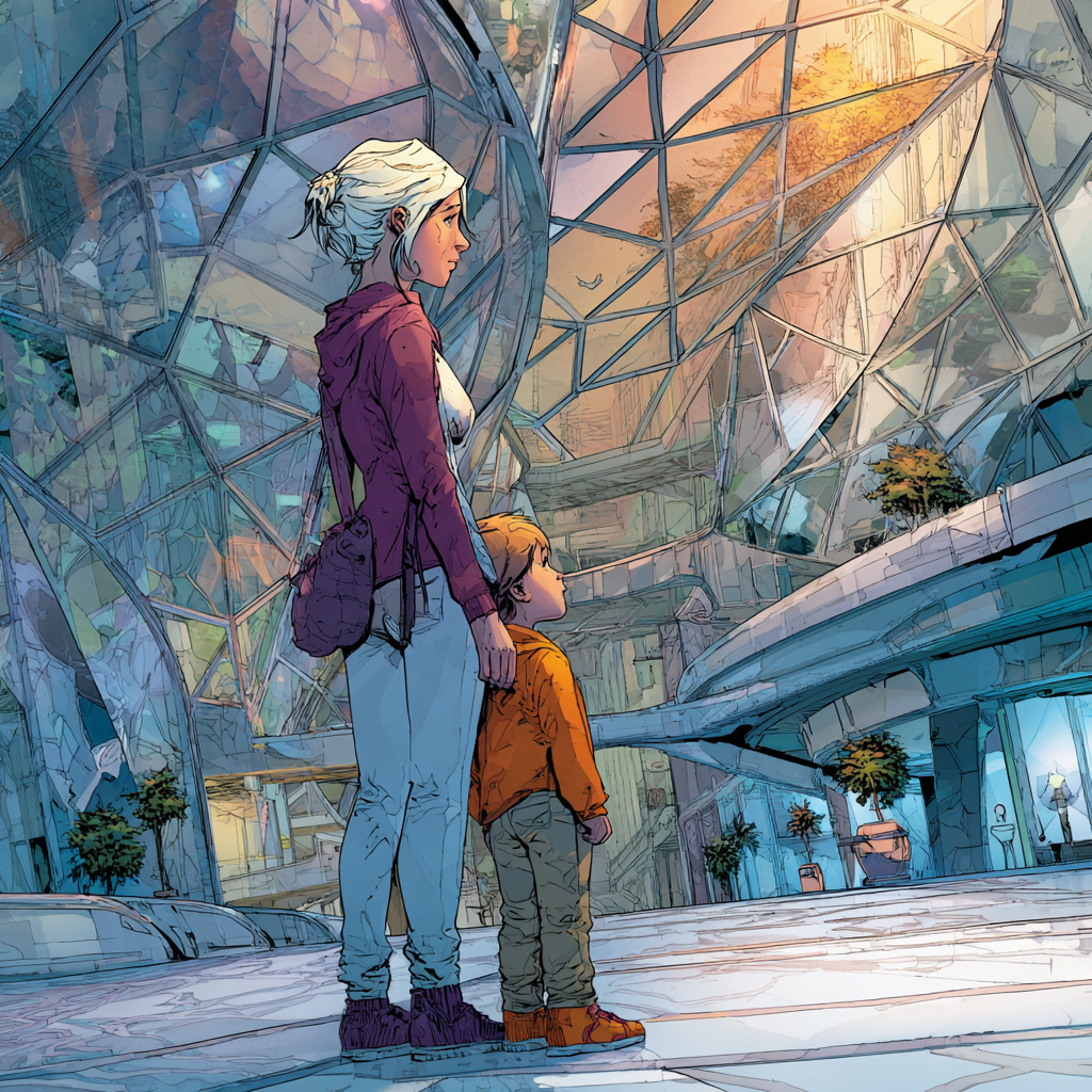 A Woman wanders though the mall with her son, looking for the service desk for the personal housing. She has recently lost her husband, and is in need of a place to live and care for her child. She was forced to sell the family's house in the countryside, an advanced tiny house that allowed her family to live simply and grow more than enough food for the family, and make some profit on the side. She has qualified to recieve goverment aid that allows her to browse many housing locations. This mall had been advertised as one of the safest places for children, with nearby parks and a very low violent crime rate.